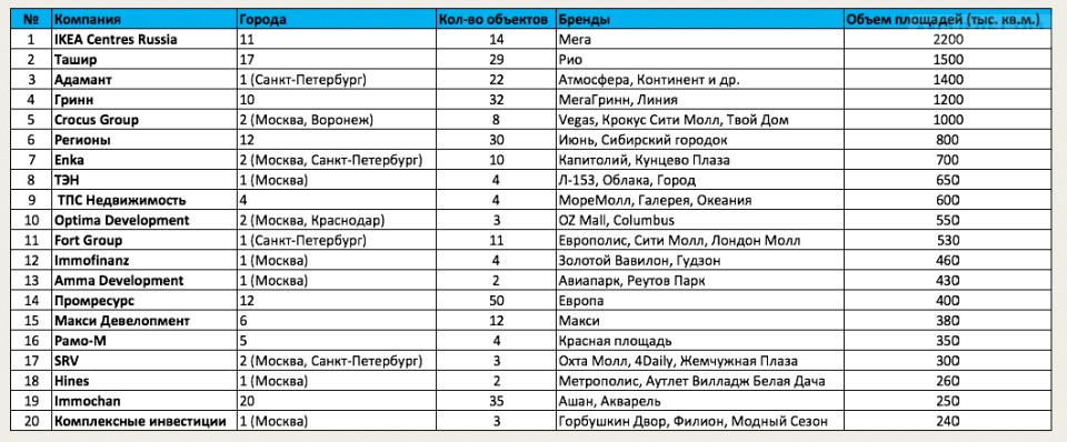 Моллы.Ru проанализировали данные по ключевым сделкам и новому строительству и определили основных владельцев на рынке торговой недвижимости в России. Безусловные лидеры - IKEA, "Ташир", "Крокус", Enka и компания - остались на своих позициях, а во второй десятке произошло немало интересных перестановок.