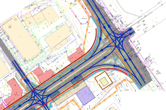 Согласно проектной документации, специальный съезд появится для поворота направо с улицы Красноармейскя в сторону моста для автотранспорта, который движется со стороны пл. Гагарина. Такой же съезд построят для автотранспорта, движущегося вниз по мосту и поворачивающего направо на улицу Красноармейскую в сторону пр. А.Невского. Ширина каждого съезда составит 4 метра.