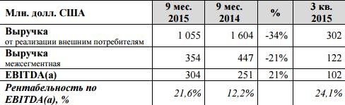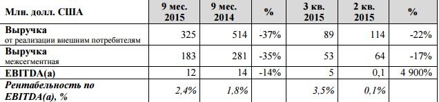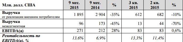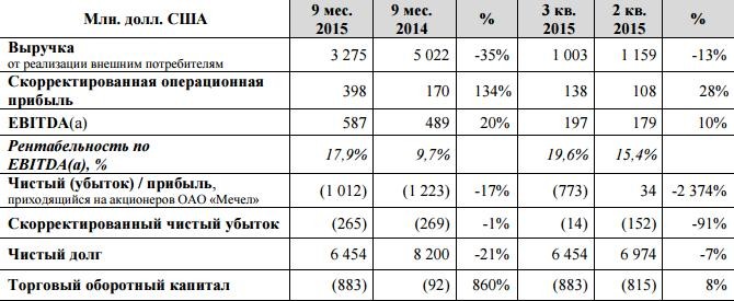 "Мечел" объявляет финансовые результаты за 9 месяцев 2015 года.