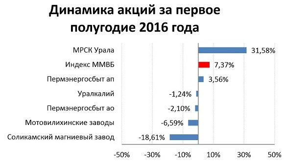 Среди пермских компаний, акции которых размещены на биржах, наилучшую динамику в первом полугодии 2016 года показали ценные бумаги МРСК Урала. Такие данные приводятся в официальном сообщении инвесткомпании "Витус".