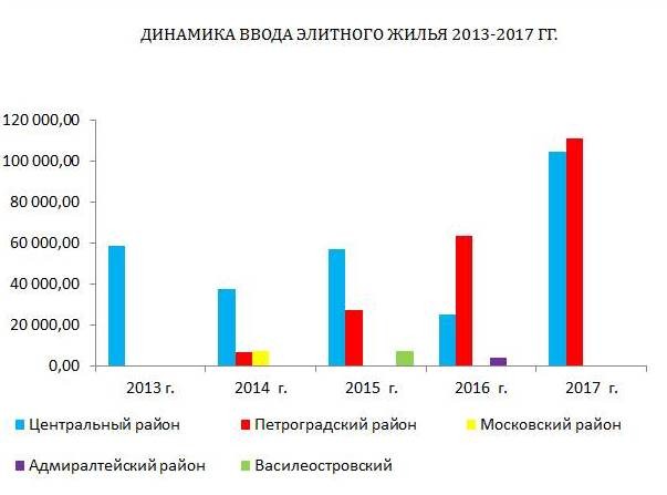 В высоком сегменте недвижимости Санкт-Петербурга происходит перераспределение сил. Если в 2013 г. в Петроградском районе не было построено ни одного жилого комплекса премиум-класса, то по итогам 2017 г. на его долю придется уже 52% от всего объема строящейся элитной недвижимости. По данным аналитиков девелоперской компании "Леонтьевский Мыс", в 2016 г. здесь будет введено 63 тыс. кв.м. Рекордсменом по вводу станет ЖК "Леонтьевский Мыс" (57 тыс. кв.м). Для сравнения в Центральном районе этот показатель составит 24 тыс. кв.м. По итогам 2017 г. прирост элитного жилья в Петроградском районе составит 111 тыс. кв.м, при этом в Центральном к концу 2017 г. сдадут 104 тыс. кв.м.