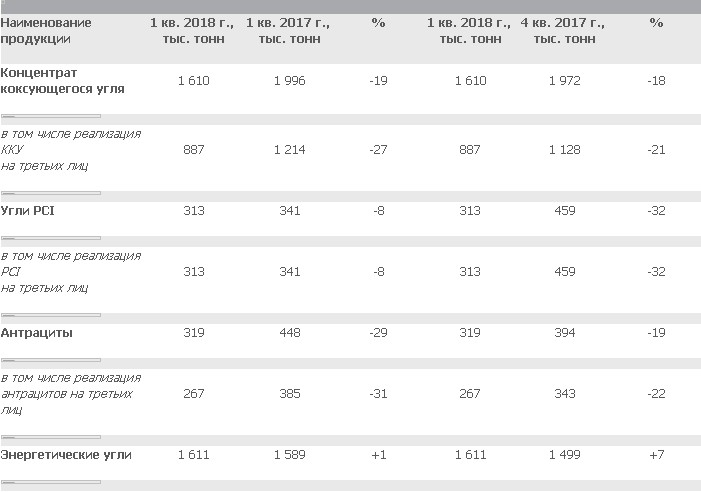 Показатель реализации концентрата коксующегося угля (ККУ) ниже уровня предыдущего квартала в связи со сверхнормативными запасами ККУ в портах в 4 квартале 2017 года, что дало в тот период дополнительный прирост по объемам. Также влияние оказали плановые ремонтные работы на обогатительной фабрике "Нерюнгринская" в начале этого года. Особенностью 1 квартала 2018 года стало перенаправление продаж ККУ с китайского на более маржинальный японский рынок, куда мы нарастили поставки на 10%. Реализация углей PCI упала из-за ослабления спроса в Азиатском регионе, в результате чего мы перенесли часть поставок на апрель. Рост продаж энергетического угля на 7% в сравнении с предыдущим периодом произошел за счет увеличения поставок в адрес российских энергетических холдингов.