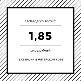 На эти цели в Барнауле, Бийске и Рубцовске в этом году будет направлено 1,41 млрд рублей. Таким образом, суммарный объем вложений в станции СГК на Алтае в 2019 году составит 1,85 млрд рублей.