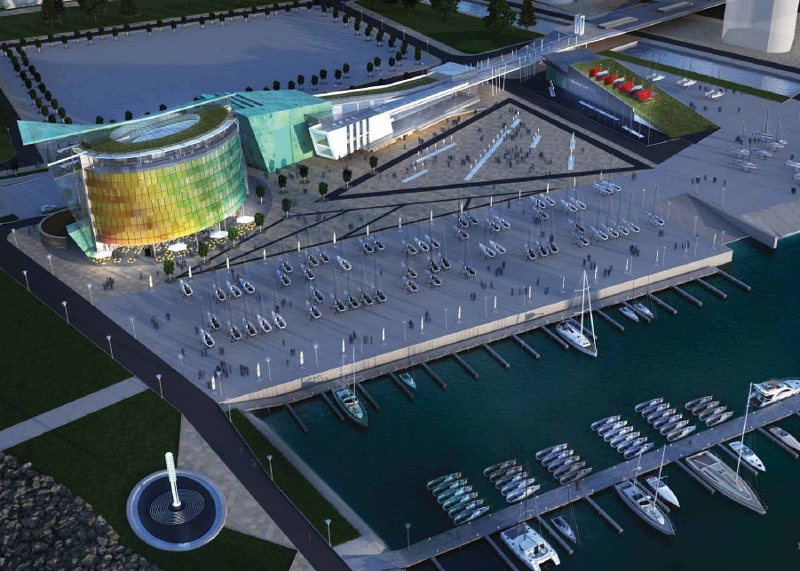 Над яхт-центром маяком должна взвиться на 47 метров медиабашня с четырьмя стеклянными этажами, с которой официальные лица смогут следить за регатами. Рядом будут работать комментаторы соревнований. Для гостей мероприятий в порту построят эксклюзивный бутик-отель на 65 стандартных номеров класса "люкс" и пять ВИП-пентхаусов и вертолетную площадку.