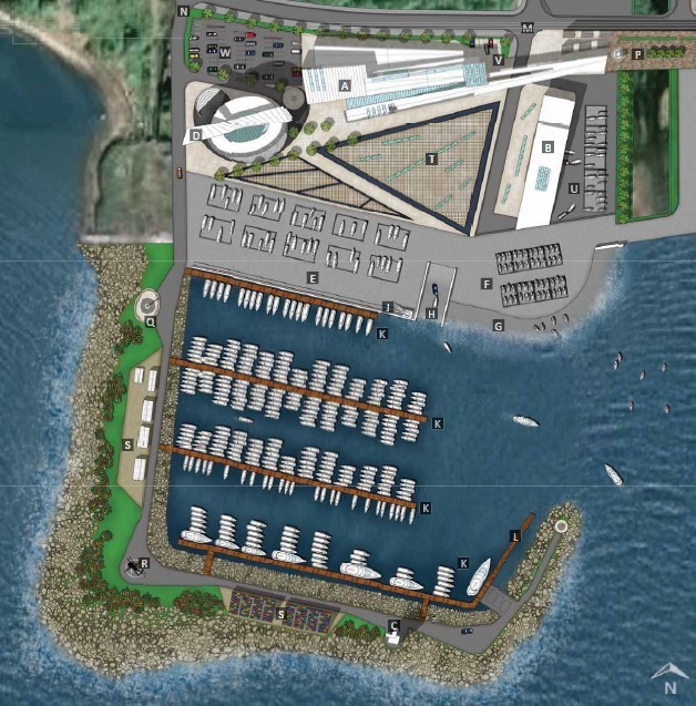 Согласно техзаданию на проектирование, основным сооружением в порту должен стать яхт-центр площадью 3600 кв. метров. Там появятся помещения для посетителей, зал для попечительского совета яхт-клуба в виде капитанского салона, с отдельными санузлами и подъемниками из кухни. А также пять отдельных кабинетов, один из которых с собственной комнатой отдыха, санузлом и душем.