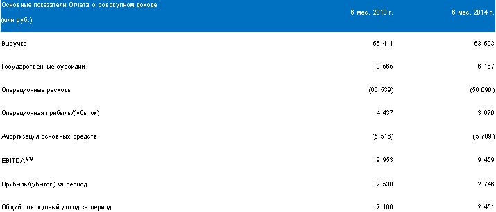 Показатель EBITDA в I полугодии 2014 года снизился на 5,0% – до 9 млрд 459 млн рублей.
