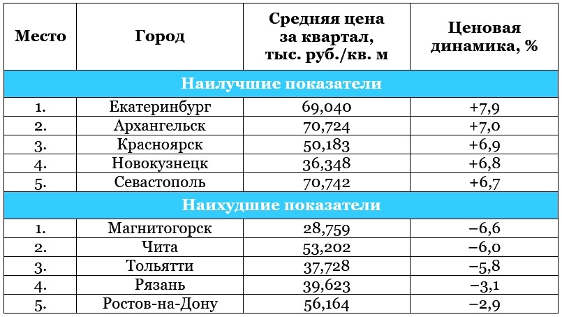 Топ-5 городов с наилучшими и наихудшими показателями по динамике цен на новостройки в первом квартале 2018 года