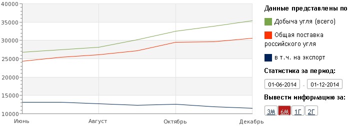 Общая поставка российского угля | 30532 | 191.6 | 100.6 | 322820.9 | 8760.1 | 102.8 |