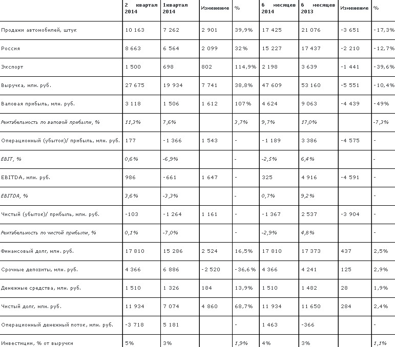 Финансовые результаты Группы КАМАЗ по МСФО за 2 квартал и 6 месяцев 2014 года.