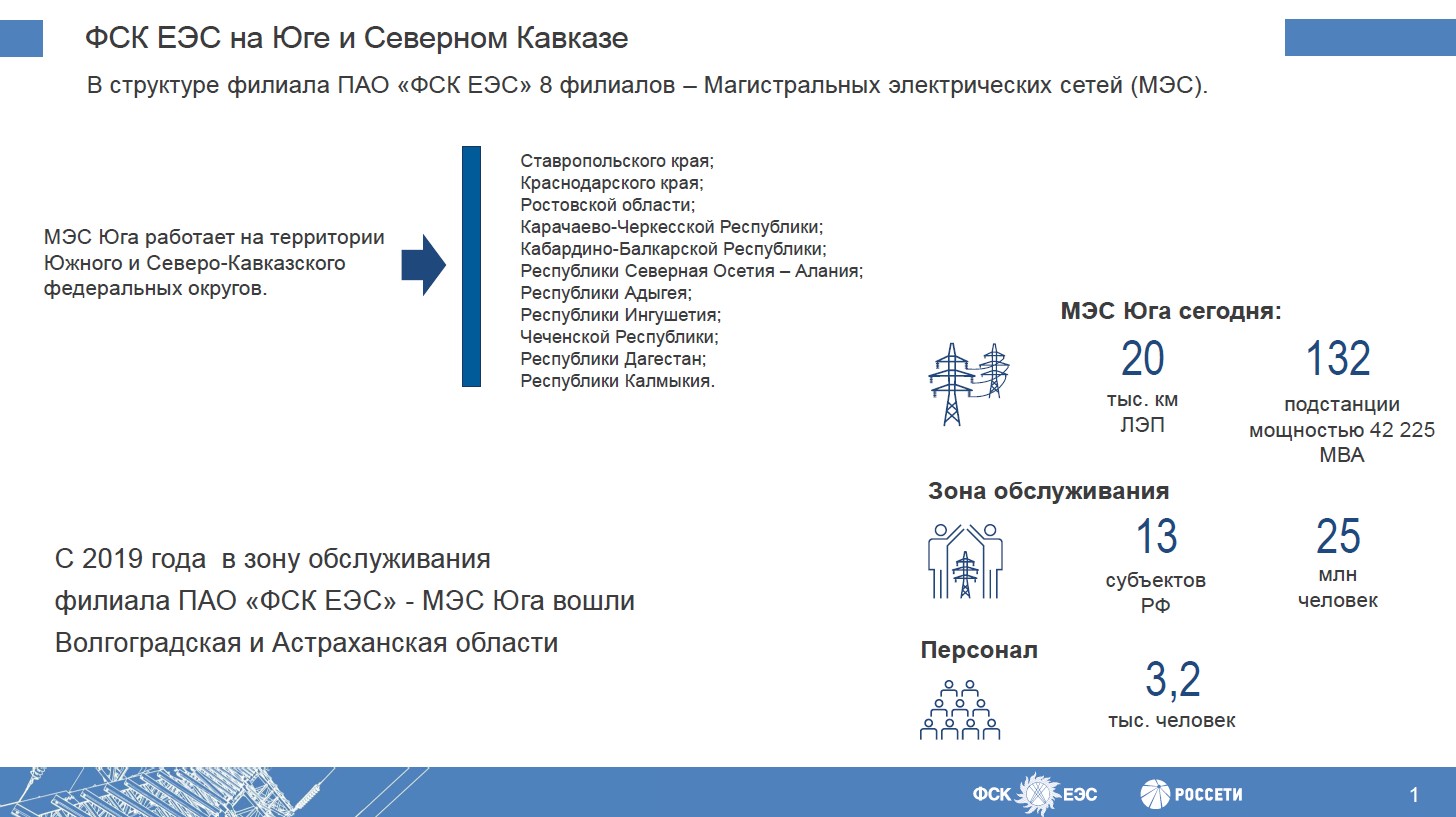Волгоградская и Астраханская области с 2019 года вошли в зону обслуживания филиала ПАО "ФСК ЕЭС" - Магистральные электрические сети (МЭС) Юга.