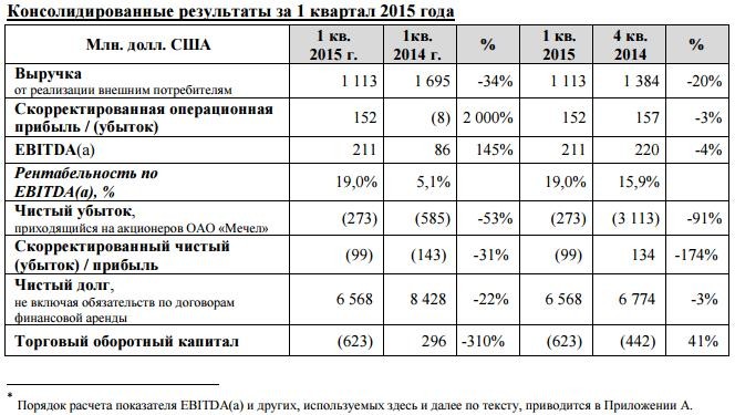 "Мечел" объявляет финансовые результаты за 1 квартал 2015 года.
