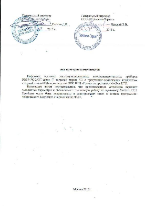 Совместное использование многофункциональных электроизмерительных приборов PD194PQ торговой марки KC и программно-технического комплекса "Черный ящик-2000".