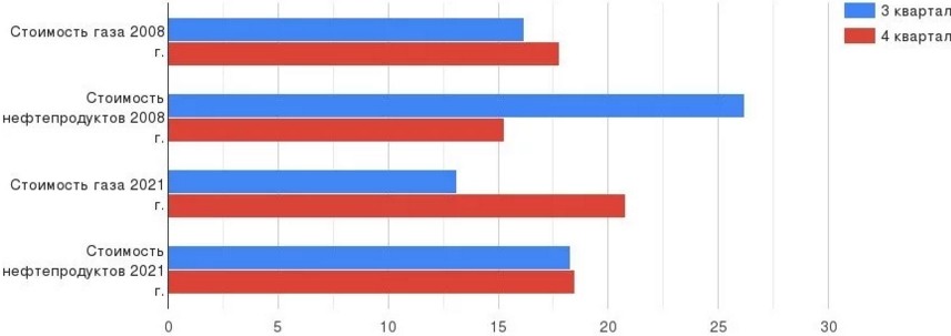 В 4м квартале 2021 г. складывается похожая ситуация стоимость экспорта из РФ природного газа достигла 20,8 млрд долл. США, что в 1,6 раза больше, чем в 3м квартале (13,1 млрд долл. США).