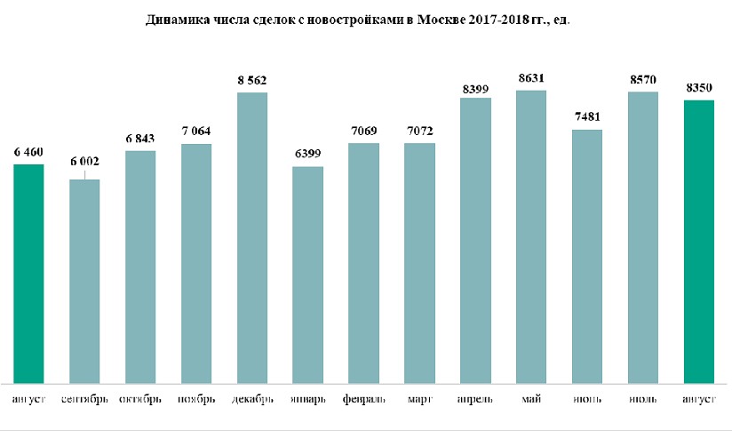 Между тем число первичных сделок с жильем все же выросло. В последний месяц лета московский Росреестр зарегистрировал 6,6 тыс. таких сделок против 6,3 тыс. ДДУ в июле и 4,6 тыс. в августе 2017 года. Таким образом, спрос на строящееся жилье в Москве увеличился на 5% по сравнению с июлем и на 43% в годовом выражении.