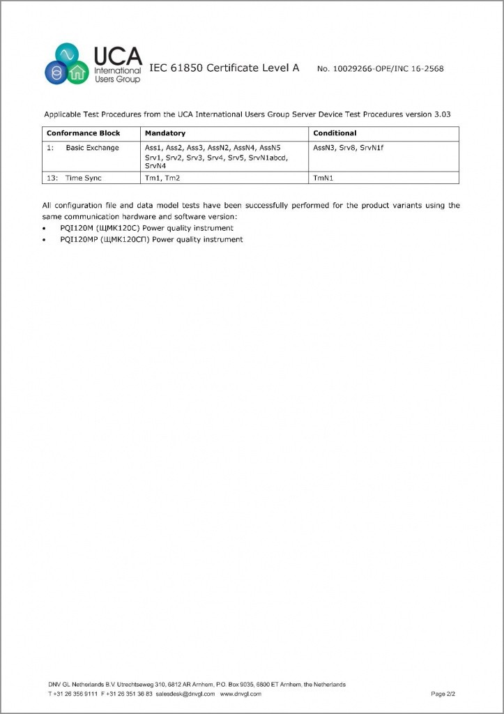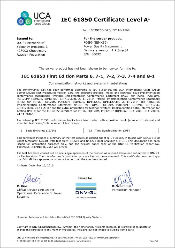 Приборы ЩМК96, ЩМК120С, ЩМК120СП компании "Электроприбор" получили сертификат соответствия стандарту IEC 61850.