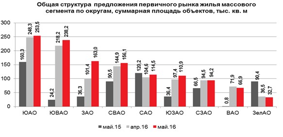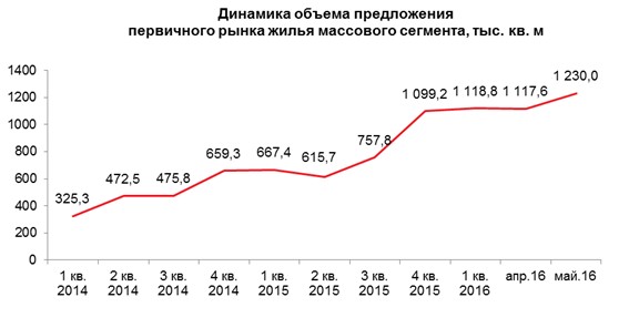 В мае в массовом сегменте на первичный рынок вышло 82,5 тыс. кв. м, что на 10,4% больше, чем поступило в предыдущем месяце. В комфорт-классе появилось два новых проектах – ЖК "Поколение" и ЖК "Петра Алексеева". Также вышел новый объем предложения в ЖК LIFE-Ботанический сад, ЖК "Мещерский лес", жилом районе Green Park, апарт-комплекск Match Point. В экономклассе в ЖК "Некрасовка" также появился новый объем.