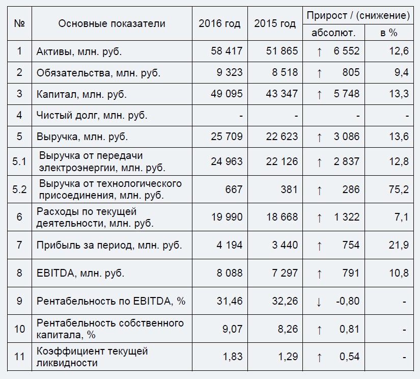 По итогам работы за 2016 год выручка Компании по МСФО составила 25 709 млн. руб., что на 13,6% выше, чем в 2015 году. Причем, выручка от оказания услуг по передаче электроэнергии составила 24 963 млн. руб., что на 12,8% выше показателя 2015 года, и обусловлено индексацией тарифов с 1 июля 2015 года и ростом объемов передачи электроэнергии в 2016 году.