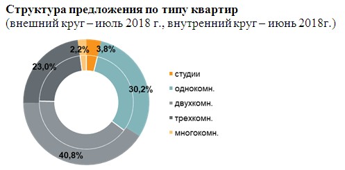 Объем экспозиции сократился на 4,7%, несмотря на выход большого количества новых объектов. Для летнего сезона не характерны высокие темпы продаж, но в июле 2018 г. количество сделок в массовом сегменте увеличилось на 12%, в сравнении с аналогичным периодом 2017 года - на 45%.