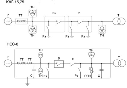 Рис.1. Структурные электрические схемы КАГ-15,75 и НЕС-8.