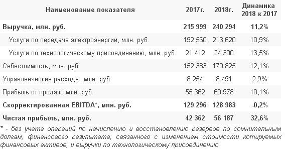 Показатели деятельности ПАО "ФСК ЕЭС" за 2018 год отражают работу менеджмента, направленную на обеспечение финансовой стабильности и повышение эффективности деятельности Общества.