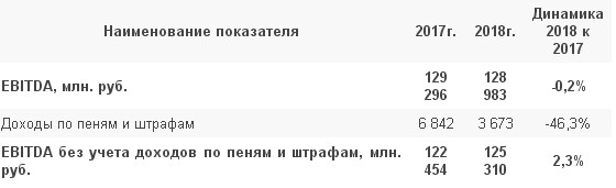 Скорректированная EBITDA составила 128 983 млн. рублей, что на 313 млн. рублей или на 0,2% меньше по сравнению с аналогичным периодом 2017 года. Такой результат обусловлен снижением доходов в виде штрафных санкций, принятых к учету на основании исполнительных листов. Без учета данного фактора рост скорректированной EBITDA составляет 2,3% (2 856 млн. руб.).