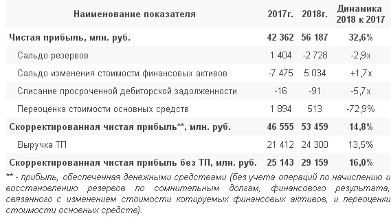 По итогам 2018 года ПАО "ФСК ЕЭС" получена чистая прибыль в размере 56 187 млн. рублей, что на 32,6% больше, чем за 2017 год. На финансовый результат большое влияние оказали неденежные операции, в том числе: