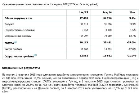Группа РусГидро публикует финансовые результаты по МСФО за 1 квартал 2015 года.