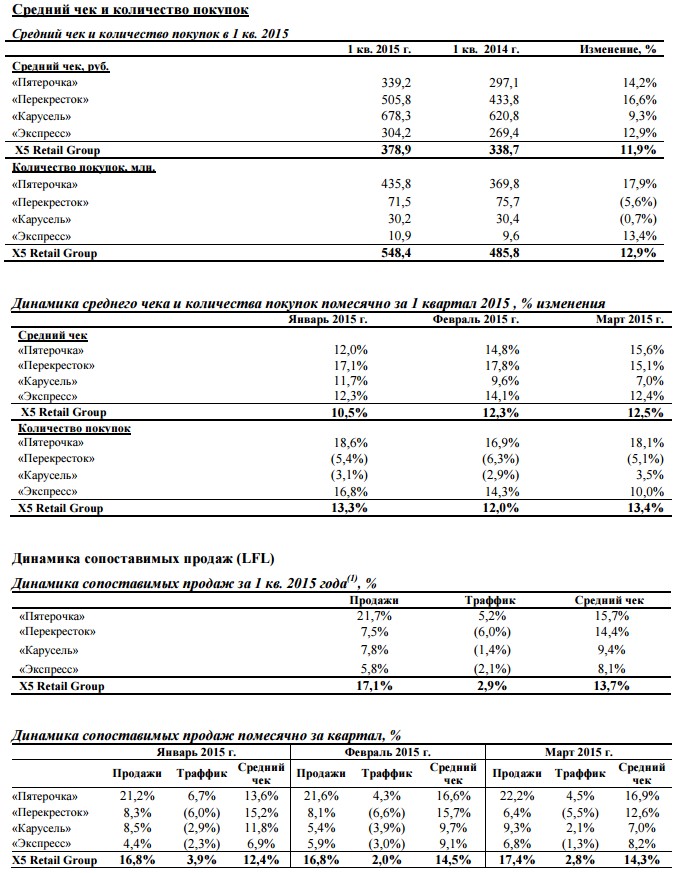 Операционные результаты X5 по итогам первого квартала 2015 года.
