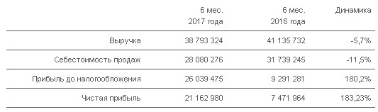 Финансовые результаты ПАО "Юнипро" за 1 полугодие 2017 года (тыс. руб.)