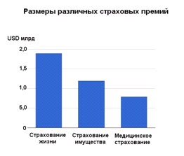 Активнее всего человечество страхует соб-ственную жизнь. На это суммарно уходит до 1,9 трлн USD ежегодно. Страхование имуще-ство стоит значительно дешевле - до 1,2 трлн USD. Еще около 0,8 трлн USD прихо-дится на медицинские страховки.