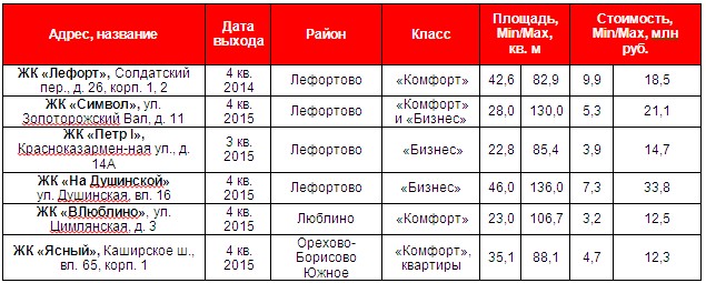 Максимальный прирост объема предложения среди районов, где по состоянию на начало 2014 года отсутствовало предложение на первичном рынке, отмечен в Лефортово. В I квартале 2014 году на рынке жилья в этом районе не было новых проектов. Только в конце 2014 года в продажу поступил ЖК "Лефорт" с объемом предложения 4,6 тыс. кв. м (по состоянию на апрель 2015 года в этом проекте объем составил 5,1 тыс. кв. м) и средневзвешенной ценой предложения 185,4 тыс. руб./ кв. м. В конце 2015 года объем предложения пополнился такими проектами, как ЖК "Петр I", ЖК "Символ" и ЖК "На Душинской". С 2015 года объем предложения в Лефортово вырос в 13,7 раз до 69,9 тыс. кв. м. Динамика средневзвешенной цены в районе была отрицательной в связи выходом нового предложения – падение за год составило 10,9%. На сегодня Лефортово занимает 1-е место по объему предложения среди районов в ЮВАО и 10-е место среди всех районов в столице.