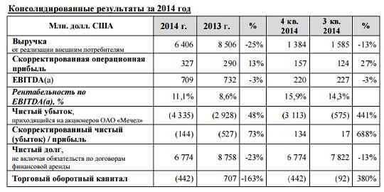 "Мечел" объявляет финансовые результаты за 2014 год.