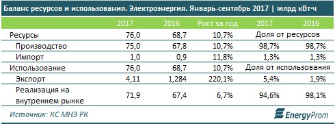 Электроэнергетики Казахстана увеличили экспорт в 3 раза. "Kapital.kz". 25 ноября 2017