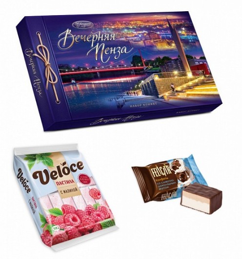 Наборы конфет с достопримечательностями Пензенского региона занимают особое место в ассортименте фабрики, поскольку часто приобретаются как сувенир и именно по ним судят о мастерстве пензенских кондитеров в других регионах. Новинка 2021 года - набор конфет "Вечерняя Пенза" - достойный представитель этой линии как по качеству, так и по оформлению. Коробка выполнена в виде фотоальбома с видами ночного города. В набор входят 3 вида конфет: "Ciocсolatio" с малиной, шоколадные конфеты с помадно-сливочной начинкой и конфеты глазированные шоколадной глазурью с корпусом из марципана "Марципановые". Помимо изысканных начинок, конфеты отличает высококачественный шоколад. Пензенская фабрика – одно из немногих кондитерских предприятий в России, которое располагает собственным цехом по переработке какао-бобов и контролирует соблюдение стандартов качества на каждом этапе производства. В состав шоколада входит натуральное масло какао прямого отжима.