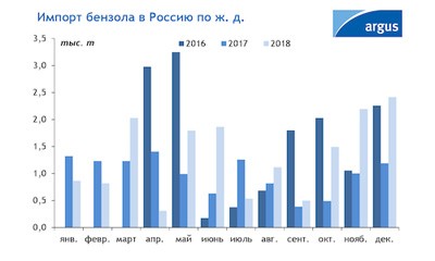 Объем ввоза нефтяного бензола и каменноугольного бензола для синтеза из-за рубежа увеличился в прошлом году по сравнению с 2017 году на 4,1 тыс. т, до 15,9 тыс. т, на фоне роста потребности в продукте со стороны единственного получателя — "КуйбышевАзота".