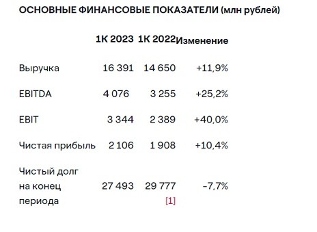 Показатель EBIT вырос на 40%, что заметно выше динамики EBITDA, в основном за счет снижения амортизационных отчислений на 16% по сравнению с аналогичным периодом прошедшего года, вслед за существенным обесценением основных средств, которое компания признала по итогам 2022 года.