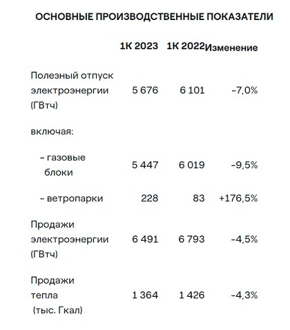 Полезный отпуск электроэнергии снизился в 1 квартале 2023 года на фоне высокой базы отпуска электроэнергии в аналогичном периоде прошлого года и сдержанной динамики по росту потребления в большинстве регионов деятельности компании.