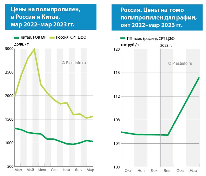"В марте на российском рынке было достаточно полипропилена, но, несмотря на это, цены выросли в среднем на 3,8%. Марки гомополимера подорожали больше всего — на 4,4%. В целом рост котировок можно объяснить изменением активности переработчиков относительно предыдущих месяцев, которые пополняли складские запасы в преддверии периода весеннего половодья и ограничений на большегрузные перевозки. В итоге котировки ПП за первый квартал выросли на 7%. Ожидается, что в апреле по ряду марок рост составит еще 10 руб./кг, что будет соответствовать подорожанию на 16% относительно начала года", — прокомментировал изменение цен директор отраслевого агентства Plastinfo Олег Буркут.