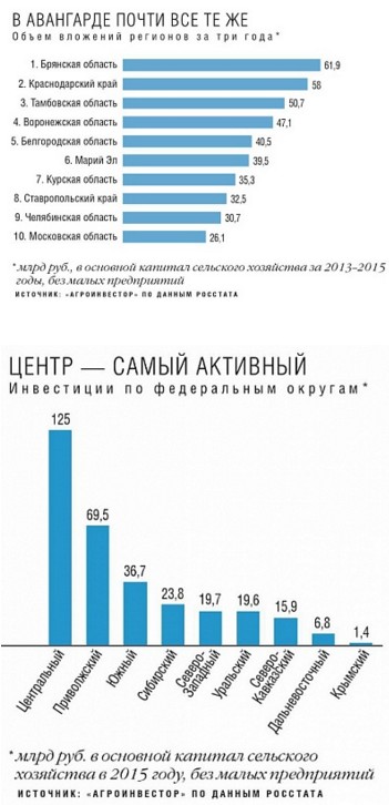 Аграрные кластеры России. Рэнкинг регионов по инвестициям в АПК. "Агроинвестор". 4 октября 2016