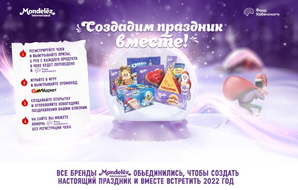 Масштабная единая коммуникация компании ООО "Мон’дэлис Русь объединит в хабе все бренды с акцентом на уникальность каждого продукта, но с единым посылом – создание праздника вместе. Покупая продукцию Mondelez в указанные сроки проведения акции и регистрируя чек на сайте акции потребитель сможет пожертвовать в фонд помощи детям с тяжелыми заболеваниями 5 рублей от каждого продукта компании. В акции участвуют 50 продуктов, потребитель сможет выбрать то, что любит больше всего или поделиться с близкими. На сайте размещена удобная механика — потребитель может изучить весь ассортимент и тут же перейти по ссылке на е-комм ритейлеров и совершить покупку. На сайте также можно сделать перечисление в Фонд Хабенского без регистрации чека с помощью кнопки "Помочь сейчас" и даже увидеть на главной странице счетчик с количеством собранной суммы.