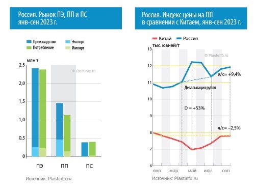Россия. Цены на первичные базовые полимеры с начала года подскочили до 42%. "Plastinfo.ru". 26 октября 2023