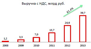 2013 год - период динамичного роста по всем направлениям бизнеса - обеспечил увеличение объема продаж компании до 39,7 миллиарда рублей (включая НДС 18 %), что составляет рост на 61,4%, по сравнению с 2012 годом.