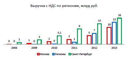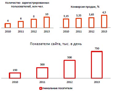 В 2013году по сравнению с 2012-м наибольший прирост выручки показали Регионы (101 %) и Москва (96 %). Прирост выручки в Санкт-Петербурге составил 27 %. При этом Санкт-Петербург остается лидером по формированию выручки.