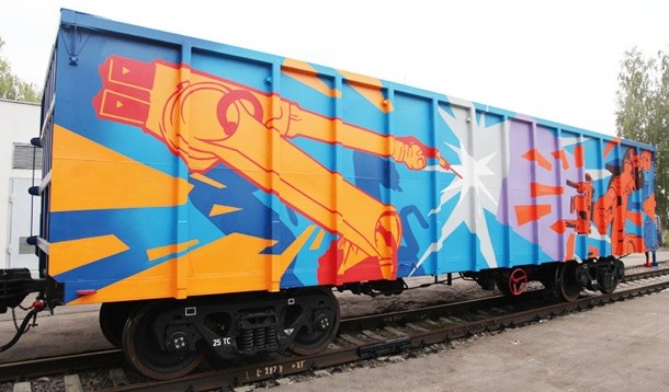 Представленный на выставке подвижной состав ТВСЗ будет оформлен в нестандартной окраске. На боковых стенах вагона-хоппера размещена инфографика, отражающая его технологические параметры и экономическую выгоду от его использования. Полувагон с разгрузочными люками оформлен стилизованным изображением доступных к перевозке грузов и иллюстрацией экономической выгоды от их перевозки в данном типе подвижного состава. Полувагон с глухим кузовом оформлен граффити, демонстрирующим автоматизированный процесс производства вагона.
