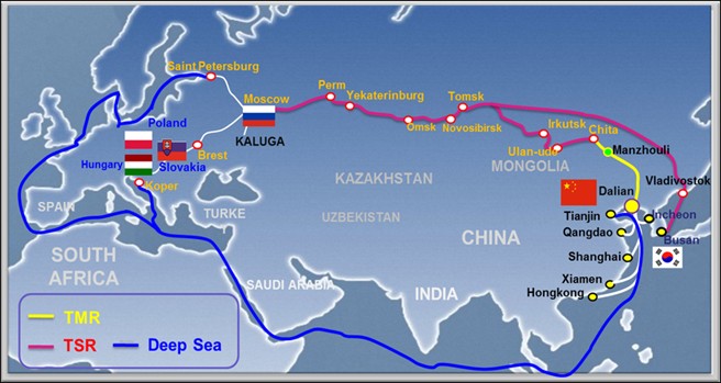 В январе 2016 года Samsung инициировала старт проекта по транспортировке компонентов и материалов на завод Samsung Electronics в Калужской области по Китайско-Восточной железной дороге и Транссибирской магистрали. Этот маршрут сократил время доставки на 32 дня (с 50 до 18 дней).