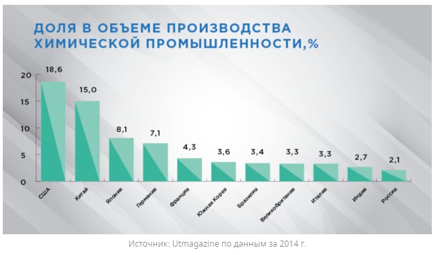 Анализ отрасли по состоянию на 2013 год показывал значительное отставание России от стран-лидеров по объемам производства химической продукции, глубине переработки сырья, существенную зависимость внутреннего рынка от импорта.