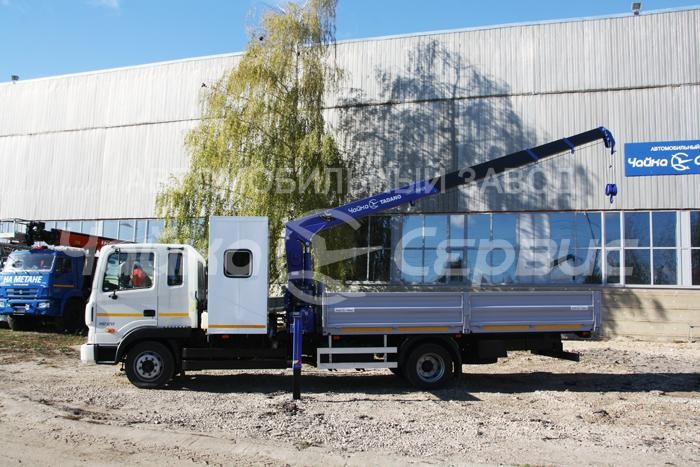 Автомобильный завод "Чайка-Сервис" выпустил многофункциональный автомобиль на базе HyundaiHD120 со специальным фургоном и тросовым крано-манипулятором Чайка-TadanoTM-ZE364, а также бортовой платформой из стального профиля.