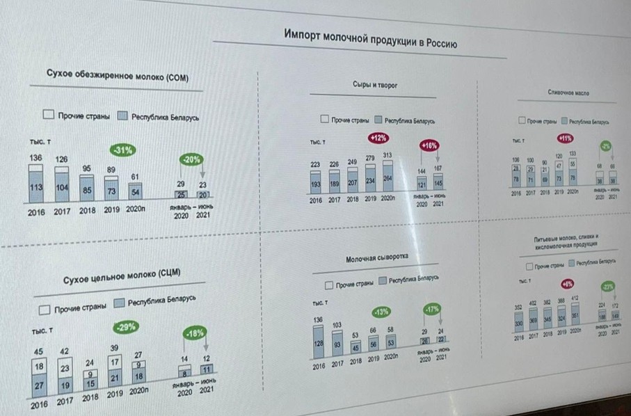 Объем импорта молочной продукции в Россию снизился с 2013 года на треть – Артем Белов. "DairyNews.ru". 26 августа 2021