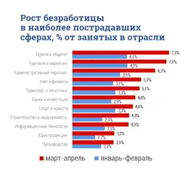 Между тем, директор офиса Manpower group в Петербурге Наталья Белашова, говорит о том, что в течение апреля-мая наблюдался активный массовый набор персонала лишь у некоторых компаний, связанных с производством товаров народного потребления (FMCG), остальные компании либо приостановили подбор, либо снизили потребность. «Существенно возрос спрос на курьеров, комплектовщиков, упаковщиков также как и в других регионах. По профессиональным позициям, начиная от уровня квалифицированных специалистов и выше, мы также отмечали меньшую активность — по некоторым отраслям снижение в найме до 50%», — подчеркнула Наталья Белашова.
